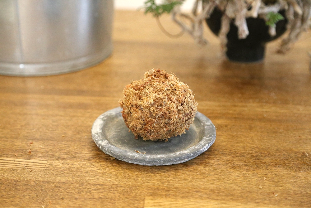 水苔を手で丸め、苔玉の形を作っていきます。