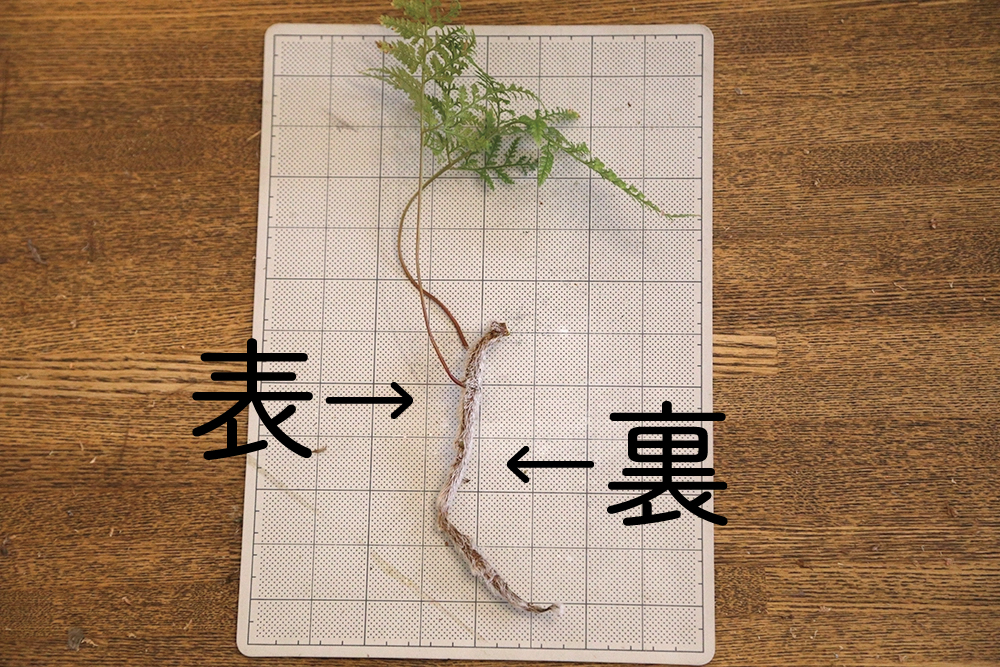 裏側は比較的毛が薄く、こちらから根が出てきます。